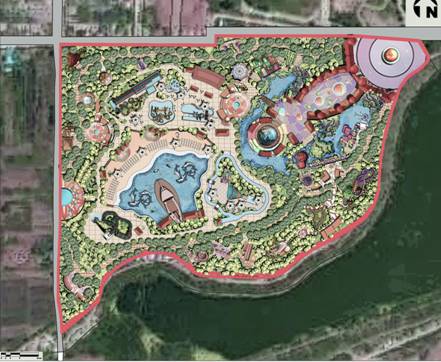 2.3功能分區:根據項目地的場地情況、開發現狀、發展思路等,確定功能分區為:綜合服務區——仙聚蓬萊、親子娛樂體驗區——八寶樂園、水上娛樂區——八仙戲水、陸地冒險區——龍宮歷險。